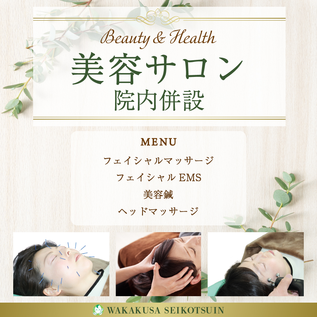 お肌の若々しさと美しさを引き出す、整骨院ならではのオリジナルメニューです。 ツボやリンパの流れを熟知した専門家の施術ですので、シミ・シワ・たるみ・くすみなどでお悩みの方お任せください。 美容鍼・フェイシャルマッサージ・ヘ […]